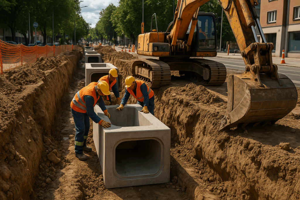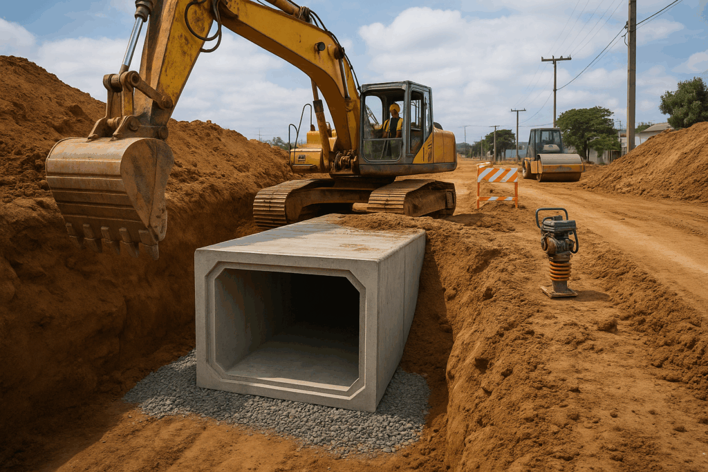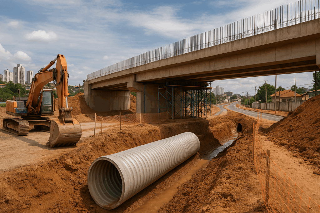 As obras de artes correntes são fundamentais para o suporte à infraestrutura viária e de drenagem. Incluem bueiros, galerias, canaletas, sarjetas, gabiões e caixas de passagem. A OCS Construtora executa esse tipo de obra com precisão geométrica e respeito às exigências hidráulicas e geotécnicas, garantindo o escoamento adequado das águas pluviais e a preservação da estrutura das vias. São intervenções essenciais que sustentam o funcionamento cotidiano das cidades.